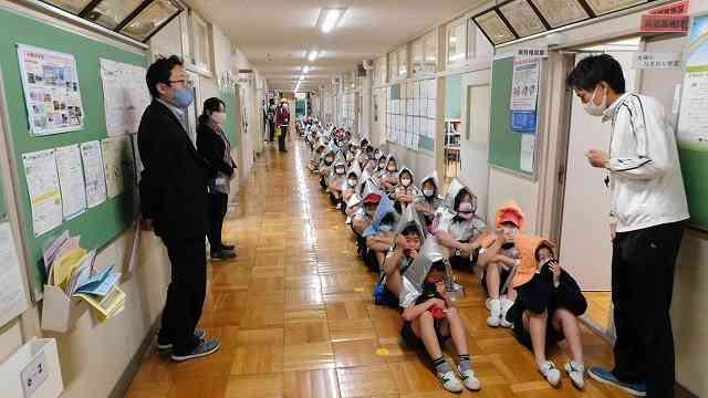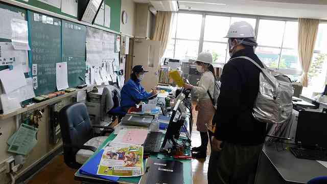 4月16日(金) 今日の1校時終わりの時間、火災設定の避難訓練を行いました。昨年度は、密を避けるため、廊下までの避難をしていましたが、今回は校庭への避難を予定していました。ところが、直前に雨が降り出したため、昨年度方式で廊下までの避難訓練にしました。教員は職員室に報告に行きました。こどもたちは廊下で静かに座って待つことができました。「緊急の時は放送をよく聴くことが大切です。何が起こっているのか、どこへ避難したらよいのか、普段から放送が入ったら口を閉じて、内容をよく聞く習慣をつけることがが大切です。」と校長先生からお話がありました。毎月の避難訓練。いざというとき、自分の命を守るためにしっかり行っています。【添付ファイル】