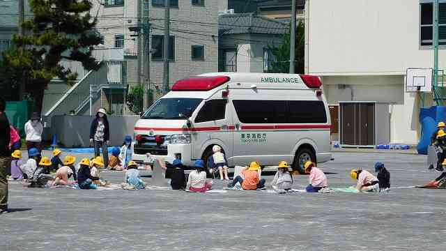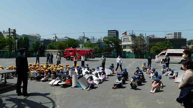 4月19日(月) 今日の3,4校時に、1,2年生がはたらく消防写生会をしました。城東消防署の方に来ていただきました。本当ははしご車が来る予定でしたが、学校の周りは道が狭く、はしご車が入れなません。今回は消防車と救急車でしたが、消防士さんが消防服を着てモデルになってくださったので良かったです。 昨年度は中止になってしまったので、2年生も今回が初めてでした。 風が強くて大変でしたが天気がとても良く気持ちのよい写生会になりました。【添付ファイル】