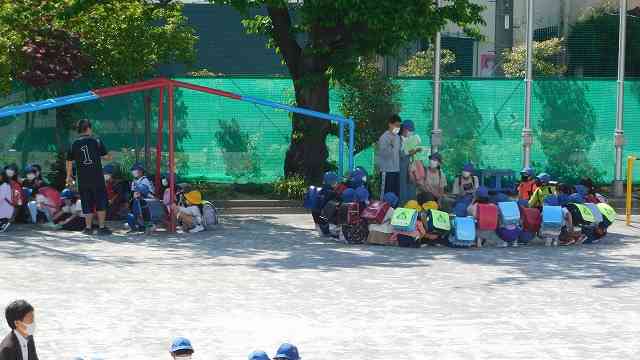4月21日(水) 今日の5校時に、地域班活動をしました。例年は、担当の先生の教室で集まるのですが、今年度は校庭で行いました。全員そろったところで、地域班に分かれ、校庭の端の木陰で自己紹介をしたり担当の先生の話を聞いたりしました。その後、きっずに残る子以外は、集団で一緒に下校をしました。緊急時にも一斉下校訓練と通学路の安全点検も兼ねました。