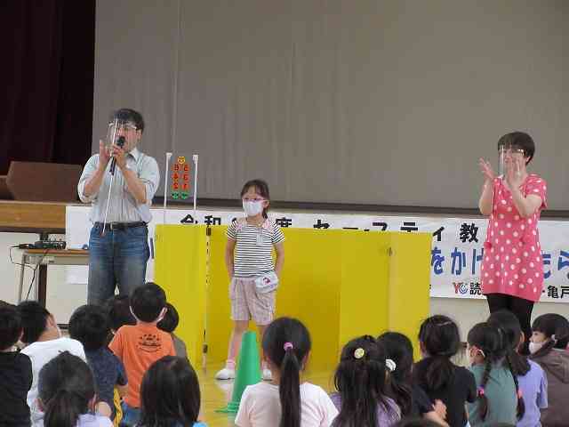 6月22日(火) 今日はセーフティ教室がありました。1~3年生は、3校時と4校時の2グループに分けて、体育館で行いました。 東京読売防犯協力会・読売センター亀戸の方々に講師として来ていただき「~こわいめにあわないために! もし声をかけられたら?~」というテーマで、犯罪被害防止についてのお話をしていただきました。もしも、声をかけられたときの断り方や逃げ方なども、ロール・プレイングで学びました。【添付ファイル】