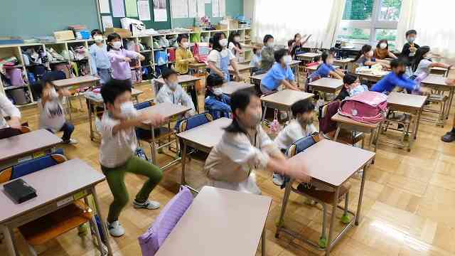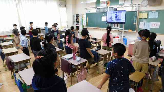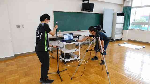9月9日(木) 今日は体育朝会がありましたが、みんなで集まることはできません。そこで、テレビで全校朝会と同じように教室で見ながら集会をしました。室内でできる運動の動画教材を見て、その説明通りに教室で運動しました。これからも、休み時間の外遊びが少なかったり、雨の日が多かったりします。学校でも家でも工夫して運動しましょう。