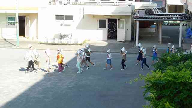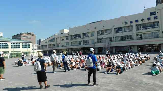 10月4日(月) 今日の2校時に避難訓練を行いました。今回は大きな地震が起きた後、停電のため放送設備が使えないという設定としました。各教室にあるトランシーバーを使って、江東区防災服で身を固めて気合いの入った副校長先生が職員室から指示を出しました。久しぶりの校庭への避難でしたが、こどもたちは落ち着いて静かに避難行動ができました。気持ちが伝わったようです。今後も、いざという時に命を守る行動ができるように訓練していきます。【添付ファイル】