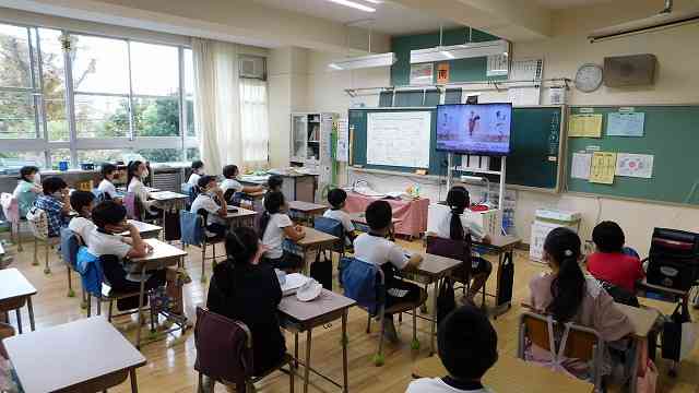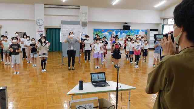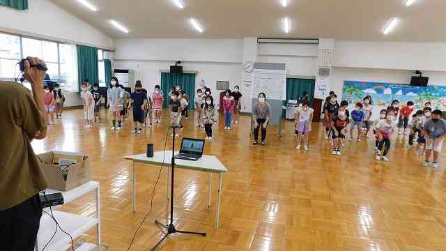 10月7日(木) 今日の音楽朝会は、ホールからテレビ放送で行いました。4年生はホールに集まり、他の学年は教室で参加しました。初めに「夜にかける」の曲に合わせたボディーパーカッションの動画を見てイメージをつかみました。続いて,音楽の先生が動作を一つ一つ説明しました。低学年用は動作が少し簡単です。4年生はお手本としてカメラに向かってやってくれました。最後に、全校で一緒にボディーパーカッションをしました。離れていてもみんなで一つになって楽しみました。【添付ファイル】