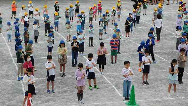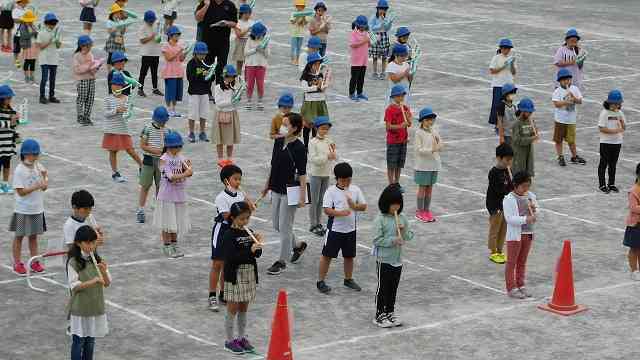 10月12日(火) 今日の1校時に、1,2,3年生が鼓笛譲渡式の全校鼓笛の練習をしました。先日、4,5,6年生が練習しました。校庭で1,2,3年生がいる場所や、それぞれどうやって動くか覚えました。1,2年生は鍵盤ハーモニカ、3年生はリコーダーでの演奏を練習しました。