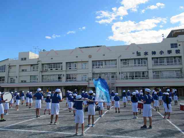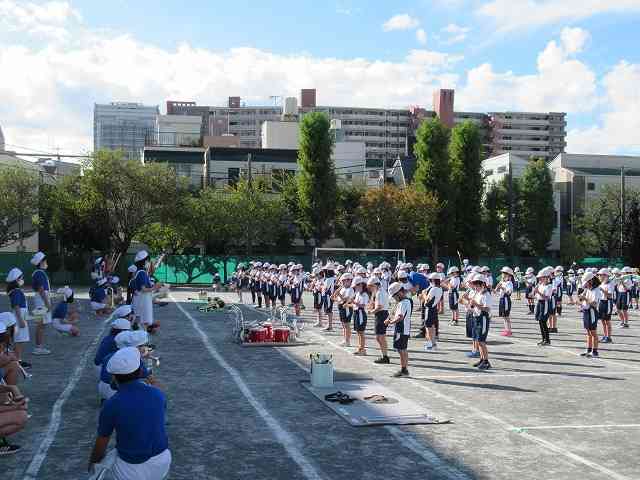 10月21日(木) 今日の1校時、19日(火)が雨天だったためできなかった鼓笛譲渡式の全校鼓笛練習を行いました。今日は、少し寒いですがいい天気でした。10月29日の本番のリハーサルも兼ねているので、ユニフォームを着て行いました。コロナ禍なので、昨年度同様、隊形移動を少なくして、学年が交錯しないようにしました。29日の本番はビデオにとり、Googleクラスルームで公開する予定です。