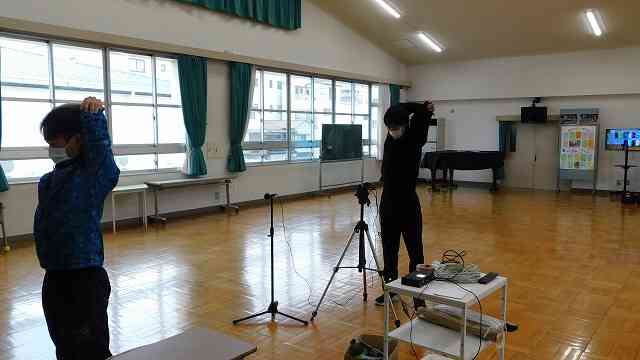 室内でストレッチしてみよう-体育朝会(テレビ放送)