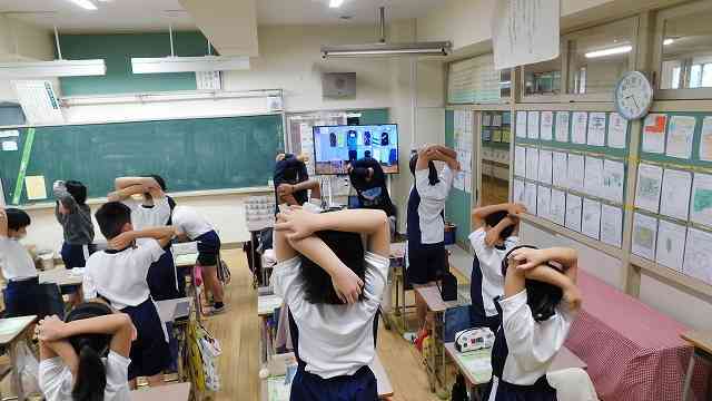 12月9日(木) 今日の体育朝会は、テレビ放送で行いました。室内でできるストレッチ運動を、体育主任の先生が紹介しました。教室でこどもたちもテレビを見ながら一緒にストレッチをしました。運動不足で体が固くならないように。