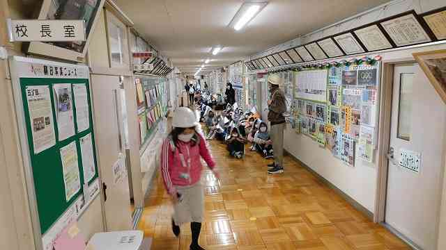 2月14日(月) 今日の3校時避難訓練を行いました。ホールから出火という設定です。本来なら校庭に避難ということになりますが、今回は、まん延防止措置期間で、他学年との接触を避けるため、廊下までの避難をしました。静かにルールを守って行動できました。