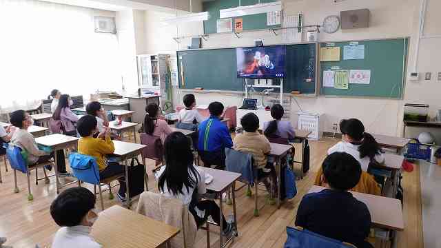 3月3日(木) 今日の音楽朝会は、テレビ放送で、クラシック管弦楽曲の鑑賞をしました。「魔法使いの弟子」という曲をアニメーションで表現した動画を観ました。キャラクターの動きが音楽に合わせてコミカルに表現されていて、こどもたちの目も釘付けでした。学級閉鎖や自宅待機の子もオンラインで一緒に鑑賞しました。