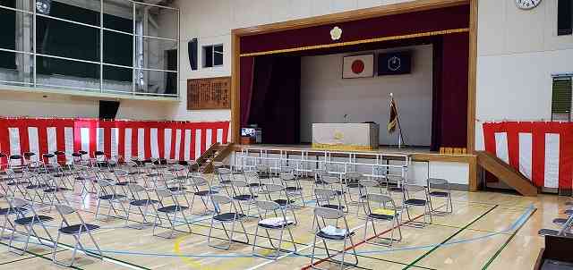 3月23日(水) 今日の朝、テレビ放送で生活指導朝会がありました。 春休みの生活について生活指導担当の先生の話を、各教室でプレゼンテーションを見ながら聞きました。生活リズムや健康、交通安全など事故なく怪我なく過ごしてほしいと思います。 卒業式を控えて、テレビ放送の機材が体育館にあるので、今日は紅白幕の体育感から中継しました。