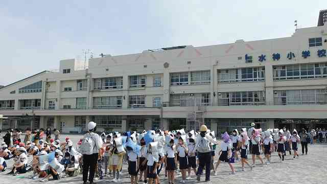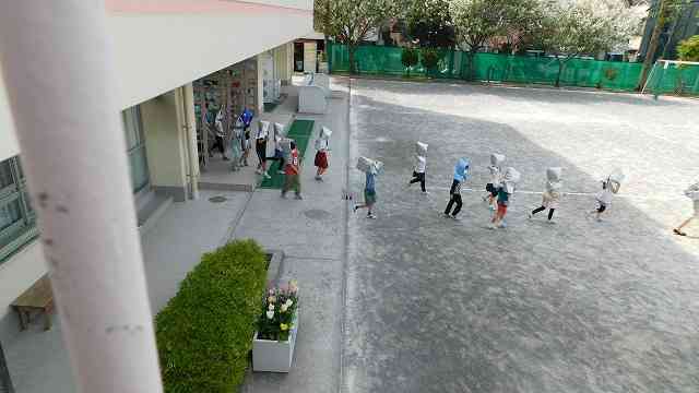 4月13日(水) 今日の2校時始まりに、今年度第1回目の避難訓練を行いました。昨年度はまん防などもあり、廊下までの避難が多かったですが、校庭へ避難が原則です。特別に1年生は廊下までにしましたが、後は全員校庭へ避難しました。今回は給食室が火事という設定でした。 放送をよく聞いて「おかしも」を守り、自分の命を守る行動ができるように訓練していきます。