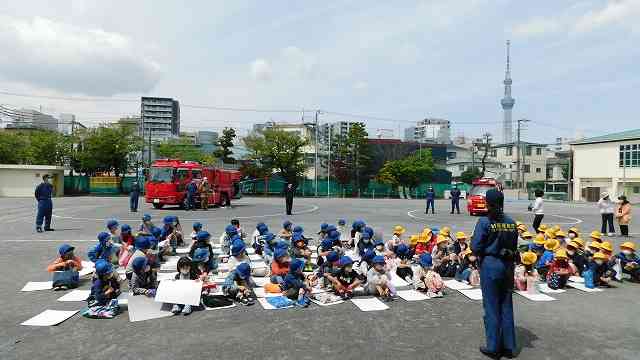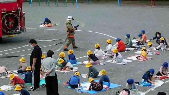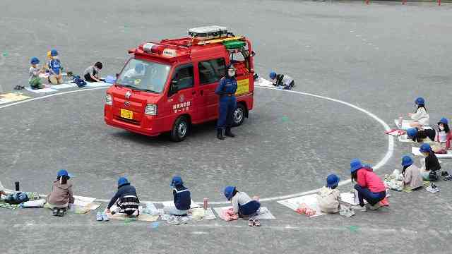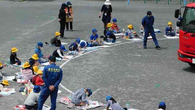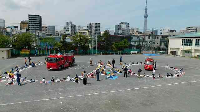 4月19日(火) 今日の3,4校時、1,2年生は働く消防写生会を行いました。城東消防署の消防士さんが何人も来てくださり、ポンプ車と小型消防車が、校庭に並びました。いつも私たちの命を守ってくださる消防士さんの働く姿を絵に表しました。 1年生は、広い校庭で初めての絵描きでした。 どんな姿が描かれているか楽しみです。