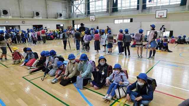 4月21日(水) 今日の5校時は、地域班で集合し、地域別に一斉下校をしました。教室で集まるのは密になるので,校庭で集合する予定でしたが、雨がポツポツ降っていたので、体育館とホールに分かれて集合しました。担当の先生から話を聞いた後、順番に下校しました。傘を差していても、明るく「さようなら」と言って帰る姿は心を晴らしてくれました。