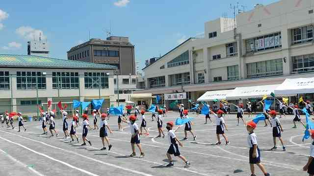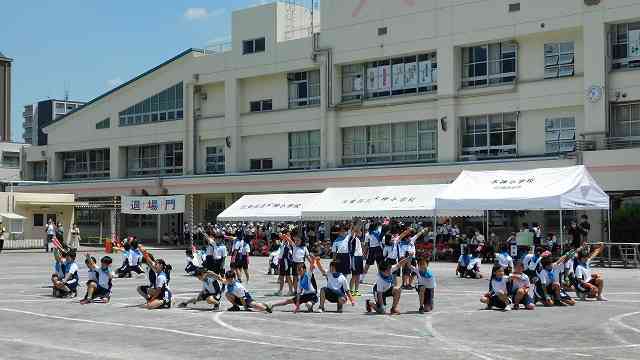 5月28日(土) (つづき)2年生の表現「ひかれ☆みんなのキャラクター」は、キラキラのポンポンを両手にもって元気なダンスで自分を表現しました。 3,4年生は短距離走で80mを競走しました。 3年生の表現「Challenge to Change!」は、大きな旗を右手に持って振るときの風を切るバサッ!という音がダンスを引き立てました。 4年生の表現「アカシア~絆~」は青いスカーフとオレンジのリストバンドをして踊りました。隊形移動して校庭を彩りました。(つづく)【添付ファイル】