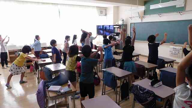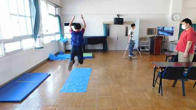 6月2日(木) 今日の体育朝会では、来週から始まる体力テストに向けて、測定方法や記録を向上するポイントを学びました。体力向上のSUIZAPという取組をしていますが、今日はテレビ放送で、上体起こしと立ち幅跳びの測定方法やポイントを、先生が実際にやって見せながら説明しました。こどもたちは教室で見ながら、身体の動かし方のコツを覚えました。