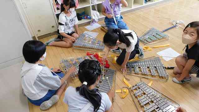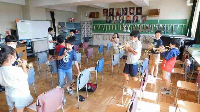 優しく教えてあげました-金管鼓笛教え合い6年・4年 1