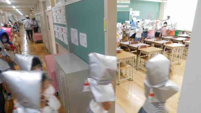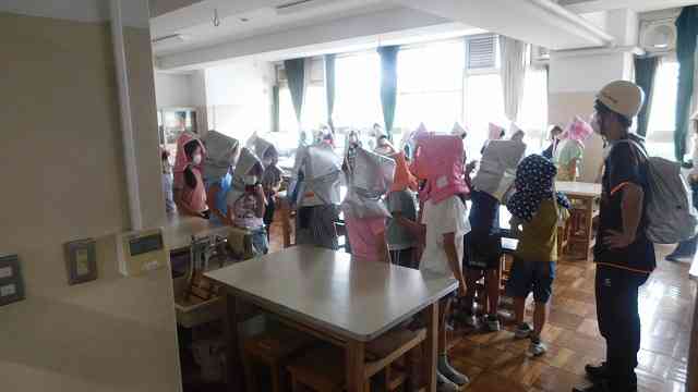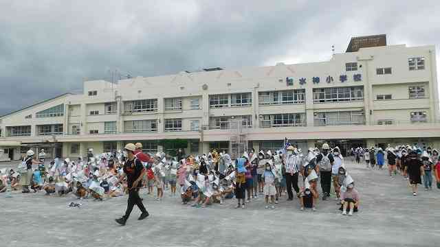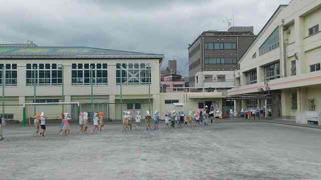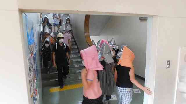 7月7日(木) 今日の2校時に、避難訓練を行いました。初めに緊急地震速報が流れ大きな地震が来るという想定です。一次避難で校庭に出ました。この後、津波、または、堤防の決壊等で水が押し寄せてくるという想定で、校舎3階に二次避難をしました。 1,2階に教室がある学年も、特別教室に避難しました。学校でなくても、津波や高潮の時は、とにかく高いところまで逃げることを確認しました。