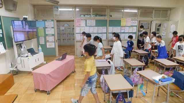 9月1日(木) 今日の音楽朝会はサンバ。テレビ放送で行いました。まず、サンバという音楽について、説明を聞きました。そのリズムに合わせて、いくつかのレベルで踊ってみました。 そのあと、二年前に作られた「水神サンバ」を一緒に歌いました。リズムにのって手拍子も入れました。全校みんなで初めて「水神サンバ」を歌うことができました。次は、みんなで顔を合わせて一緒に歌えるといいです。そういう日が早く来ることを願っています。【添付ファイル】
