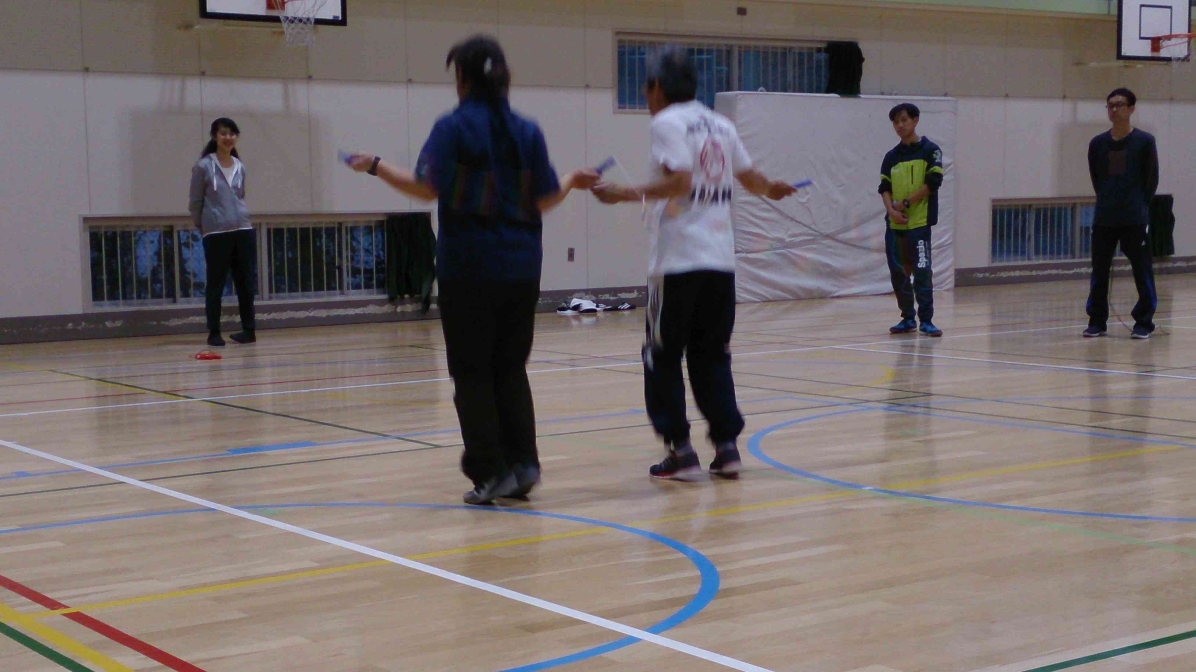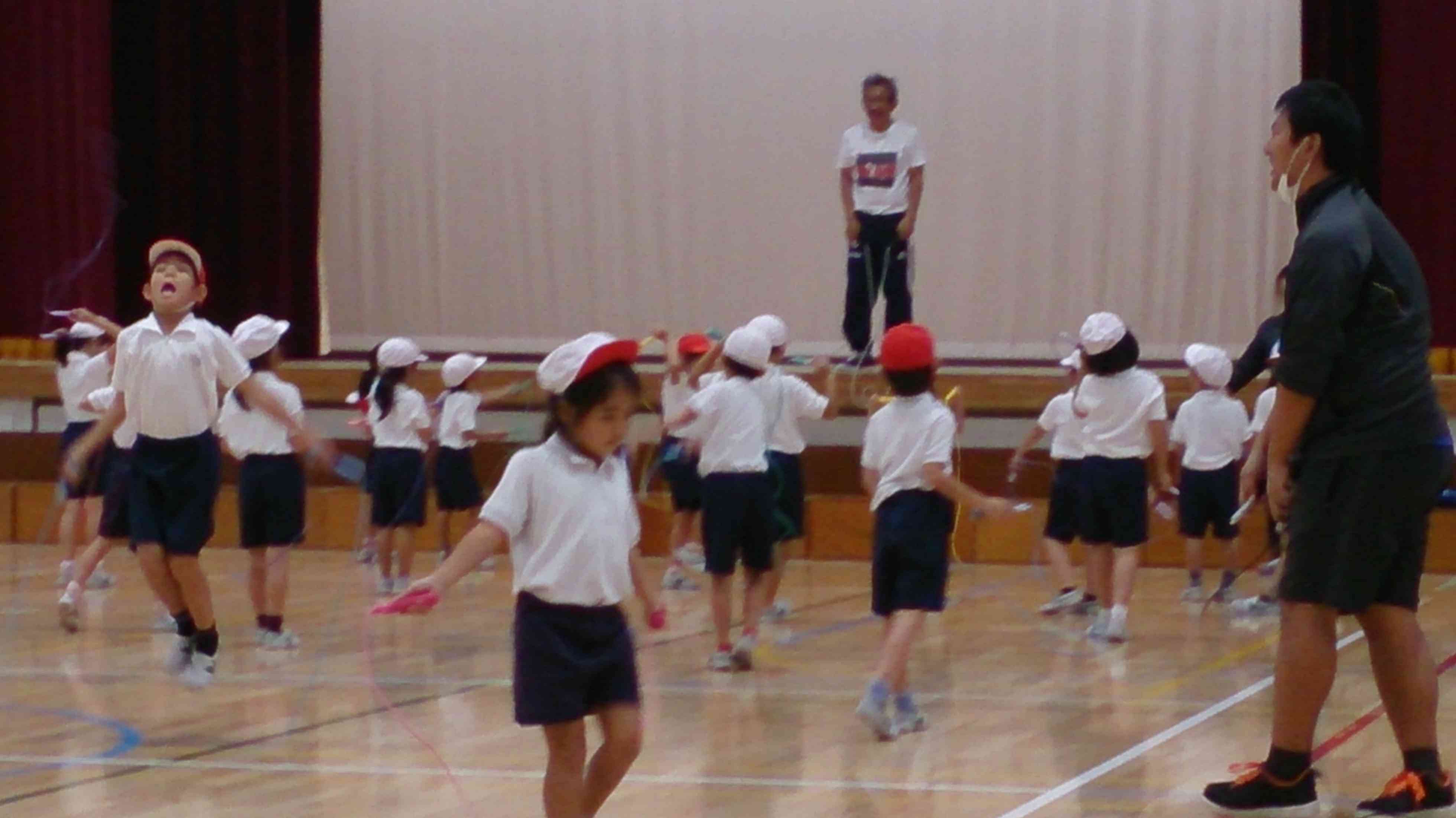 11月9日(金)に、縄跳び教室&縄跳び講習会がありました。縄跳びの名人、藤井進先生から1年生へ縄跳びの跳び方のコツを教わりました。(藤井先生はダブルダッチの世界チャンピオンです。)初めて縄跳びを連続で跳ぶことができた子もいました。 後半は、先生方への縄跳び講習会です。いろんな跳び方を教えて頂きました。