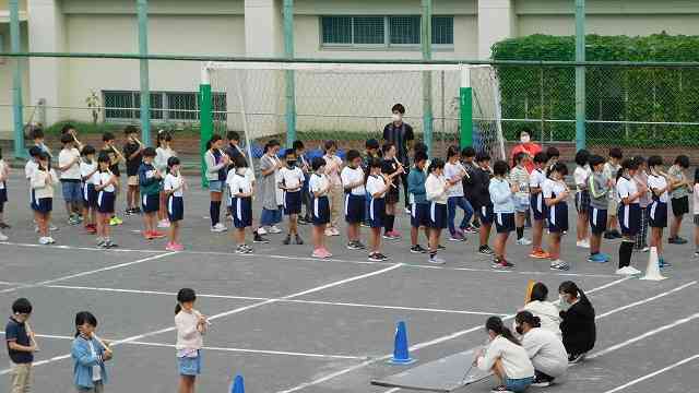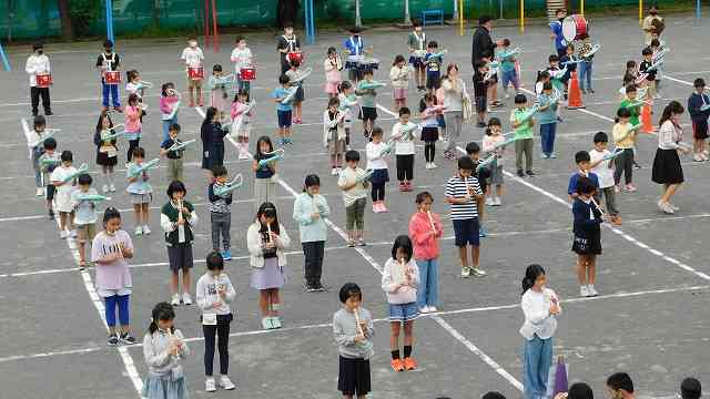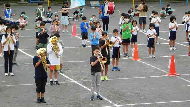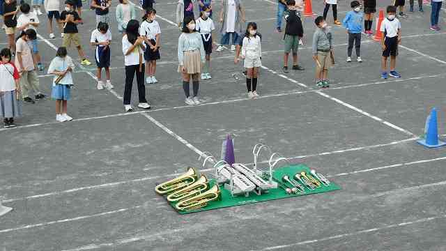 9月21日(水) 今日の1校時に、全校児童で鼓笛譲渡式の練習を行いました。6年生から5年生へ金管鼓笛の引継ぎをする伝統的に行っている行事です。低学年は鍵盤ハーモニカ、中学年はリコーダーで参加します。 全体の流れを確認しながら、通して練習をしました。 主要楽器は、最後にマットの上に置かれ、5年生が引き継ぐのです。