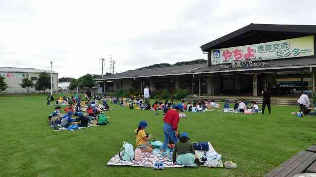 9月22日(木) 今日は、1,2年生が生活科見学に行きました。1年生はもちろん、2年生も、みんなでバスで出かけるのは初体験。コロナ禍のため、学校としても三年ぶりの生活科見学でした。 心配だった天気も、午前中はなんとかもちそうと思っていたら、嬉しいことに、朝、出発の頃はお日様が見えていました。 目的地の一つ目は、水神小学校恒例の八千代農業交流センターで、サツマイモ掘りの体験です。ビニール袋を靴の上から履いて、一人二株ずつ掘ります。中にはとっても大きなサツマイモも出てきて、「とれた-!」とイモを持った手を高く上げている子も。正に収穫の喜びです。持ち帰るための袋は重いけれど、重い方が嬉しい思いも大きいでしょう。 雨の気配もなく、芝生で楽しくお弁当を食べることができました。 到着も遅れたことと、時間が結構かかったことで、45分遅れで、次の目的地に向けて出発しました(つづく)【添付ファイル】