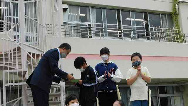 10月12日(水) 今日の1校時は、全校で鼓笛譲渡式のリハーサルを行いました。学校公開日の15日(土)が本番です。 雨が降りそうでしたが、なんとかもちました。全校で練習しましたが、みんな集中して練習に参加していました。 最後に、6年生の中で、これまで朝練習や放課後練習を頑張っていた人に、賞状が授与されました。
