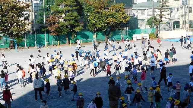 10月27日(木) 今日の児童集会は、ゲーム集会で「文字集め」ゲームをしました。 集会委員会のメンバーが、一文字が書かれたカードを裏向きにつるして、逃げ回ります。みんなは追いかけて、その文字が何か調べます。集会後、クラスで目にした文字を集めて言葉を考えます。たくさんの目で情報を集めてクラスで共有するゲームでした。 正解したクラスの発表は明日です。
