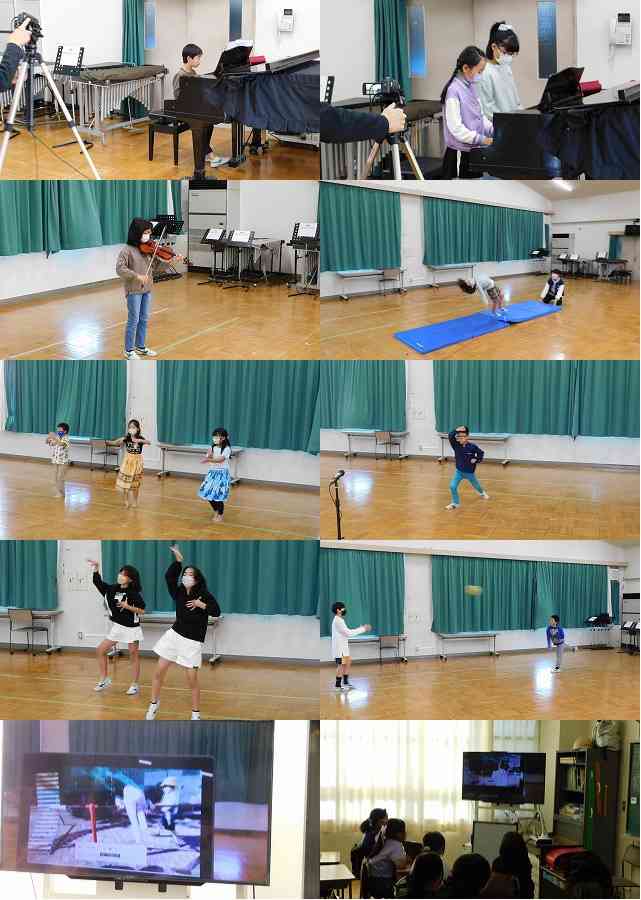 11月24日(木) 今日の児童集会は、集会委委員会の企画で「水神小すたーはっくつ!」という特技発表会でした。ホールからテレビ放送で観てもらいました。鉄棒は、事前に校庭で撮ったビデオを映しました。 事前にオーディションで選ばれた人が、それぞれの特技を披露しました。ピアノ、バイオリン、体操、フラダンス、空手、ダンス、ドッジボール、鉄棒など、短い時間ですがいろいろな特技がありました。 披露してくれた人に大きな拍手を送りました。【添付ファイル】