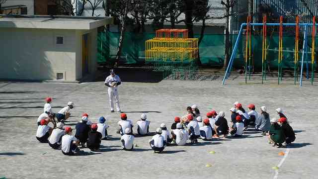 2月21日(火) 今日は、今年度2回目のヤクルトスワローズの元選手による「投げ方教室」がありました。 前回、2年生以上で前回やっていないクラスで行いました。 プロの選手に投げるフォームの基本やこつを教わって、ボールを投げてみました。しっかり話を聞いてこつをつかみ、練習を重ねれば、きっと遠くまで力強く投げることができることでしょう。
