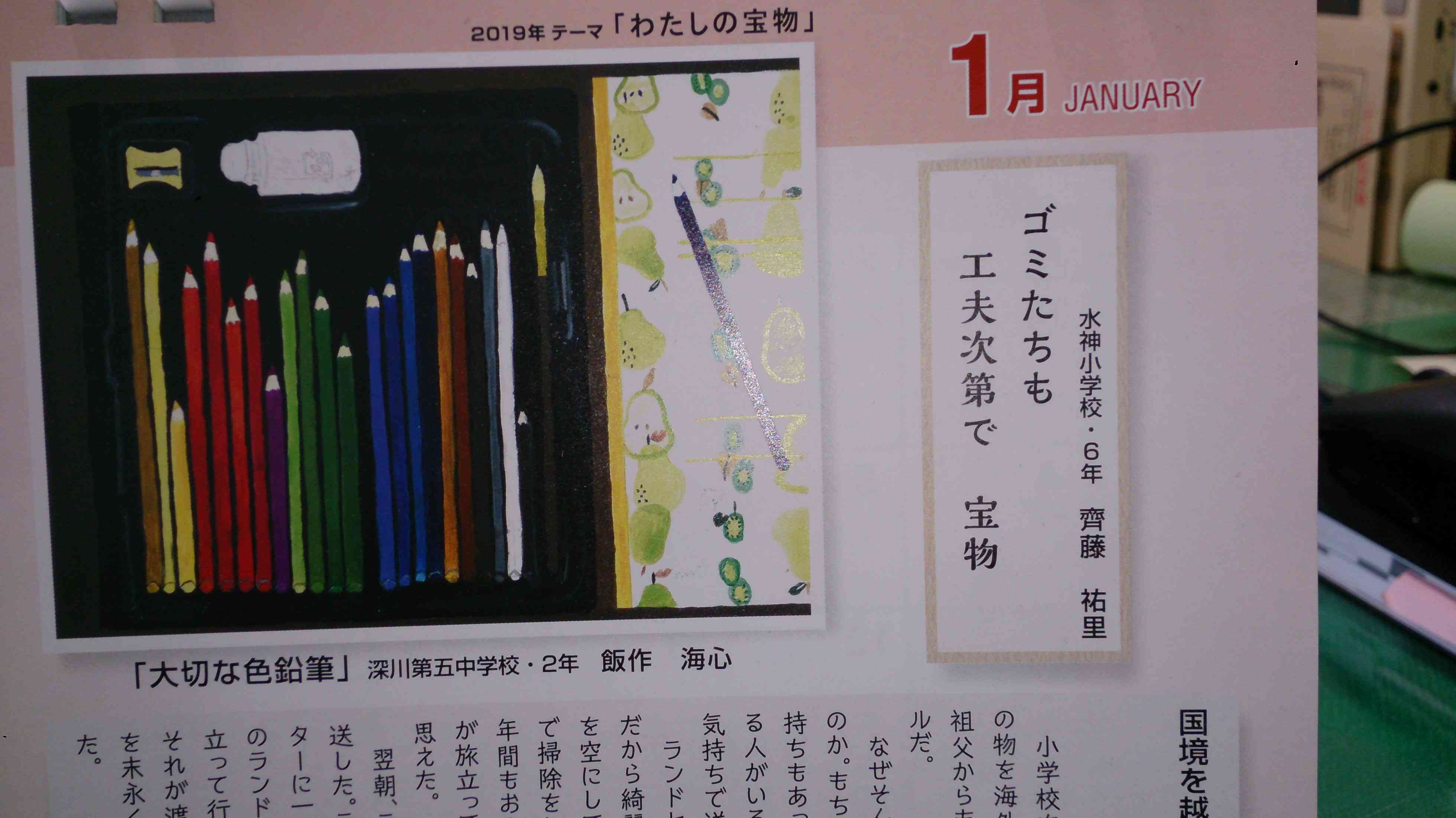 江東区青少年育成カレンダーに6年生の子が2名選ばれました。1人は1月の標語で、もう1人は7月の作文に掲載されています。カレンダーは年末に全校に配布しています。 ぜひご覧になってください。