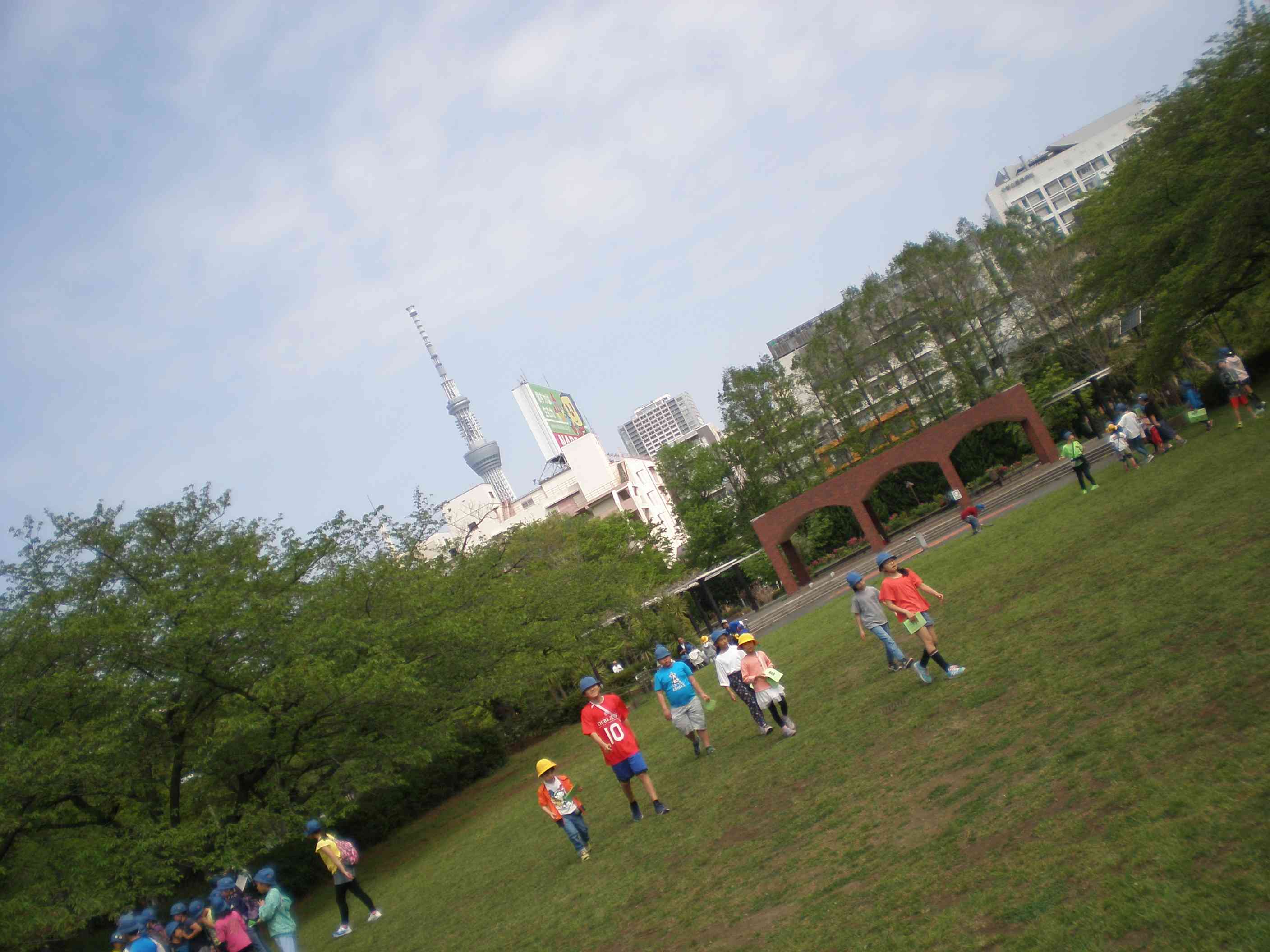 4/23(火)猿江恩賜公園に全校遠足に行きました。縦割り班でオリエンテーリングをしたり、学級で遊んだりして、楽しく過ごしました。