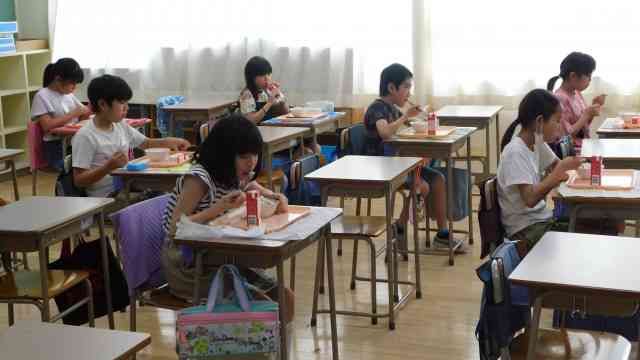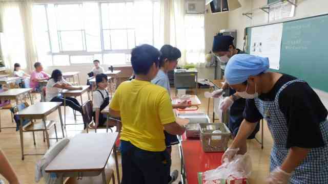 6月15日(月) 今日から、新たな分散登校が始まりました。今週から、簡易給食も始まります。今週はヒトサラ給食です。今日は牛乳とわかめご飯です。午前のグループは3時間目の授業後に、午後のグループは登校後、朝の会のすぐ後に給食です。配膳は教員がエプロン、三角巾、ビニール手袋をして行います。家で捕食が必要ですのでよろしくお願いします。 こどもたちは、離れたまま前を向いて静かに食べます。ちょっとかわいそうですが、もうしばらくの辛抱です。【添付ファイル】