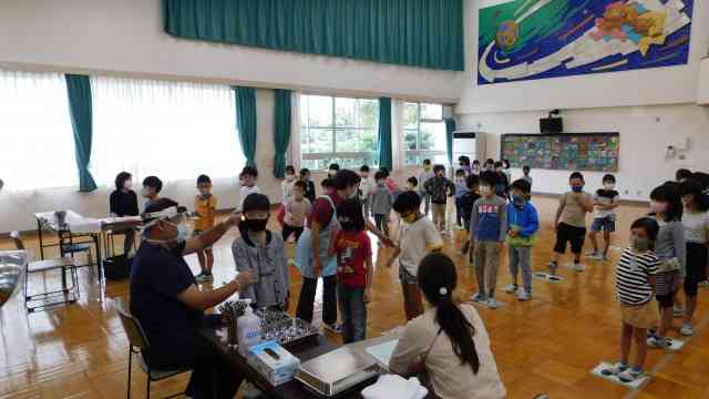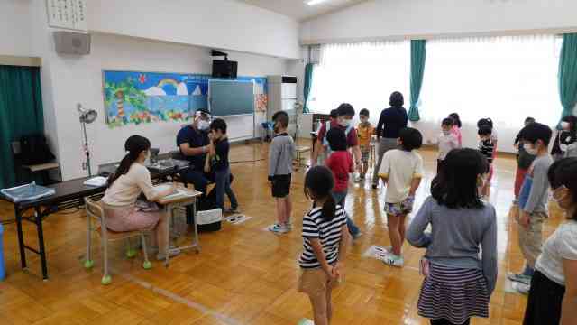 9月25日(金) 今日は、耳鼻科検診の日。春にはできなかったので、ようやく今日診ていただきました。 ホールで全学年流れるように行いました。