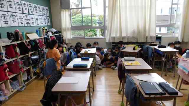 10月5日(月) 今日の4校時に、本校の北側玄関から不審者が侵入してきました・・・という設定での対応訓練です。6年の担任の先生が不審者役をしてくれました。侵入を告げる連絡が入り、放送で情報を共有した後は、現場に向かい取り押さえたり、こどもたちを教室の中で身の確保をしたり、110番通報したり役割分担しました。 不審者の身柄を確保し、警察に引渡し、こどももたちは全員無事でした。という訓練でした。【添付ファイル】