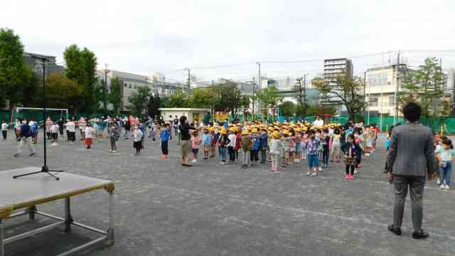 10月12日(月) 先週末関東に接近してきた台風14号は、まるで東京を避けるようにUターンして離れていきました。雨も風も予想より心配なく良かったです。台風もコロナを避けたのかもしれません。 今日は後期始業式でした。今回は校庭で行うことができました。はじめに10月から新しくいらした先生の着任式で自己紹介がありました。校庭でみんなが集まるのは今年度3回目です。毎週月曜日に校庭に集まって全校朝会をするのは当たり前のことでしたが、今年はその当たり前のことが、ほとんどできなくなりました。体育館で集会をしてみんなで歌を歌ったり、ゲームをしたり、それができない今は、できるということに感謝する気持ちをもつことを忘れてはいけません。後期は、感謝の気持ちを、良いことがあったり誰かに何かをしてもらったりしたときは、「ありがとう」と言えるようにしてほしいと思います。校長先生からそのようなメッセージがありました。 校舎に入るときは、密にならないように順番に入りました。【添付ファイル】