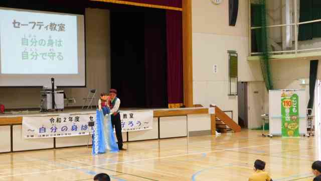 10月20日(火) 今日、セーフティ教室がありました。本来なら体育館で下学年と上学年でに分かれて行い、保護者や地域の方との意見交換会があるのですが、コロナ禍で児童だけに行いました。場所も体育館とホールを使い、2校時~4校時に5グループに分かれて行いました。 下学年は「連れ去り」の内容で、読売防犯協会様に講師としてきていただきました。腹話術の人形でわかりやすく説明してくださいました。 上学年は、「スマホセーフティ教室」の内容で、株式会社ラネット様に来ていただきました。スマホなどネット利用の注意点を教えていただきました。 犯罪被害防止・非行防止の意識を高める機会になりました。【添付ファイル】