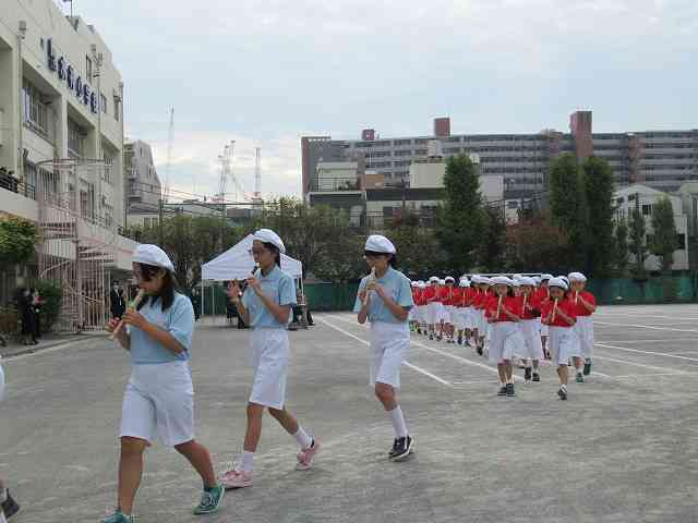 11月7日(土) (つづく)体育館でご来賓の記念撮影を行った後、校庭で、4年生~6年生の児童によるアトラクション「水神鼓笛隊」を披露しました。この日のために、一生懸命練習してきました。学年カラーのユニホームを着て、演奏しました。とても立派にできて、ご来賓の皆様にも大変喜んでいただきました。 コロナ禍で多くの制限の中でしたが、地域の皆様、保護者の皆様、江東区教育委員会の職員の皆様に大変なご協力をいただきながら無事挙行できました。心より深く感謝申し上げます。【添付ファイル】